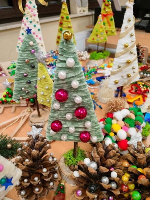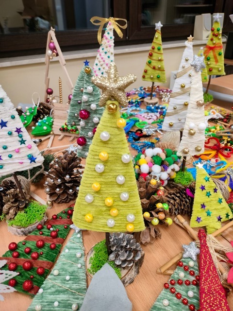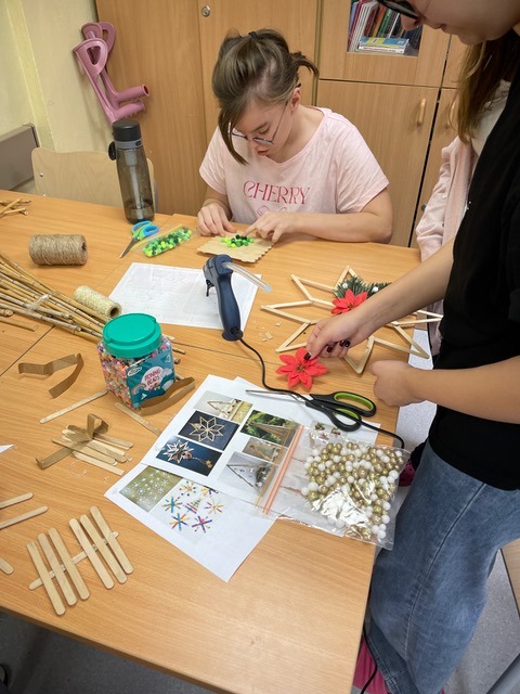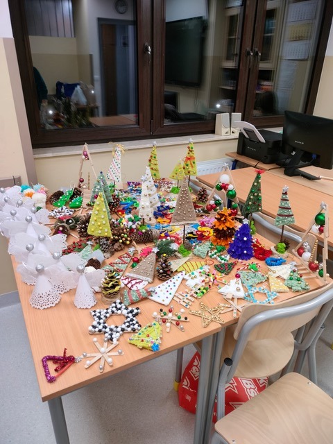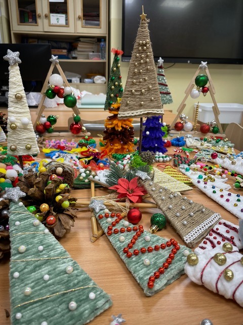 Nasi uczniowie z zaangażowaniem przygotowują ręcznie robione upominki: świąteczne ozdoby, kolorowe choinki, aniołki oraz drobne dekoracje, które mają wnieść odrobinę radości i atmosfery świątecznej w codzienne życie osób przebywających w ZOZ „Pasternik”. Choć podarunki są niewielkie, jesteśmy przekonani, że mają one ogromną moc – potrafią wywołać uśmiech, rozgrzać serce i dać poczucie, że ktoś o nich pamięta w tym szczególnym czasie.