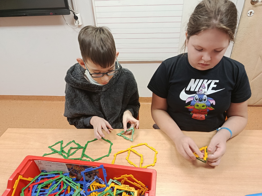 Przedświąteczny czas sprzyjał podejmowaniu działań o charakterze kreatywnym i twórczym. W związku z tym w ramach edukacji technicznej w klasie III oraz na lekcjach plastyki w klasie VI uczniowie wykonywali modele świątecznych choinek. Do realizacji tych zadań wykorzystano różnorodne zestawy klocków konstrukcyjnych zakupione w ramach programu „Laboratoria Przyszłości”. Powstałe prace miały zarówno formę półpłaską, jak i przestrzenną, a ich wygląd był efektem indywidualnej inwencji twórczej oraz pomysłowości uczniów.