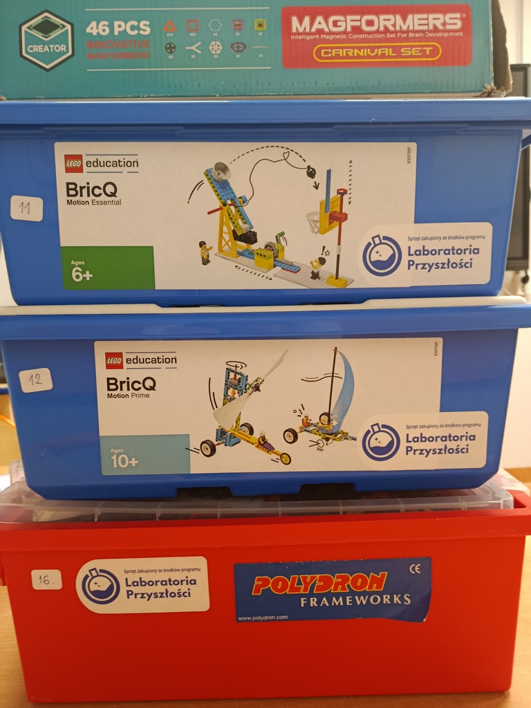 W miesiącu grudniu wykorzystywano sprzęt zakupiony w ramach programu „Laboratoria Przyszłości”, w tym laminator oraz zestawy klocków konstrukcyjnych, podczas różnorodnych zajęć edukacyjnych realizowanych w szkole.
