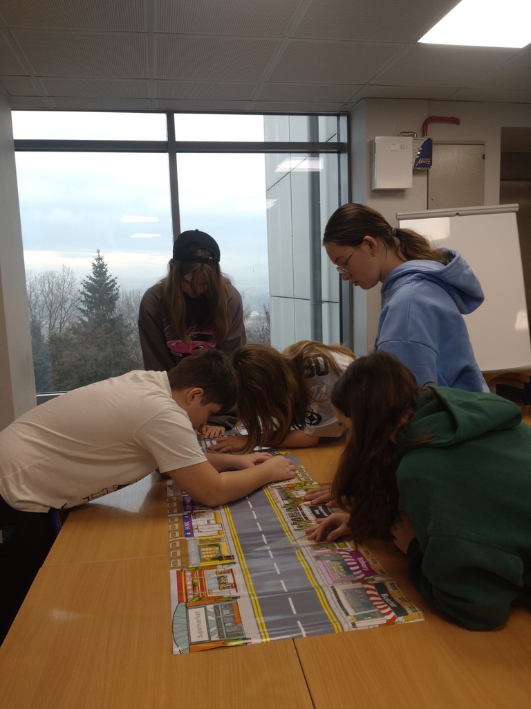 Na lekcjach matematyki w klasie VII realizowano temat „Skala na planach i mapach”. Celem zajęć było zaproponowanie i określenie skali, w jakiej został przygotowany plan ulicy miasta, na podstawie elementów o znanych wymiarach. Uczniowie pracowali z materiałami dydaktycznymi przygotowanymi i zalaminowanymi przy użyciu laminatora, co znacząco zwiększyło ich trwałość, estetykę oraz komfort pracy podczas zajęć.