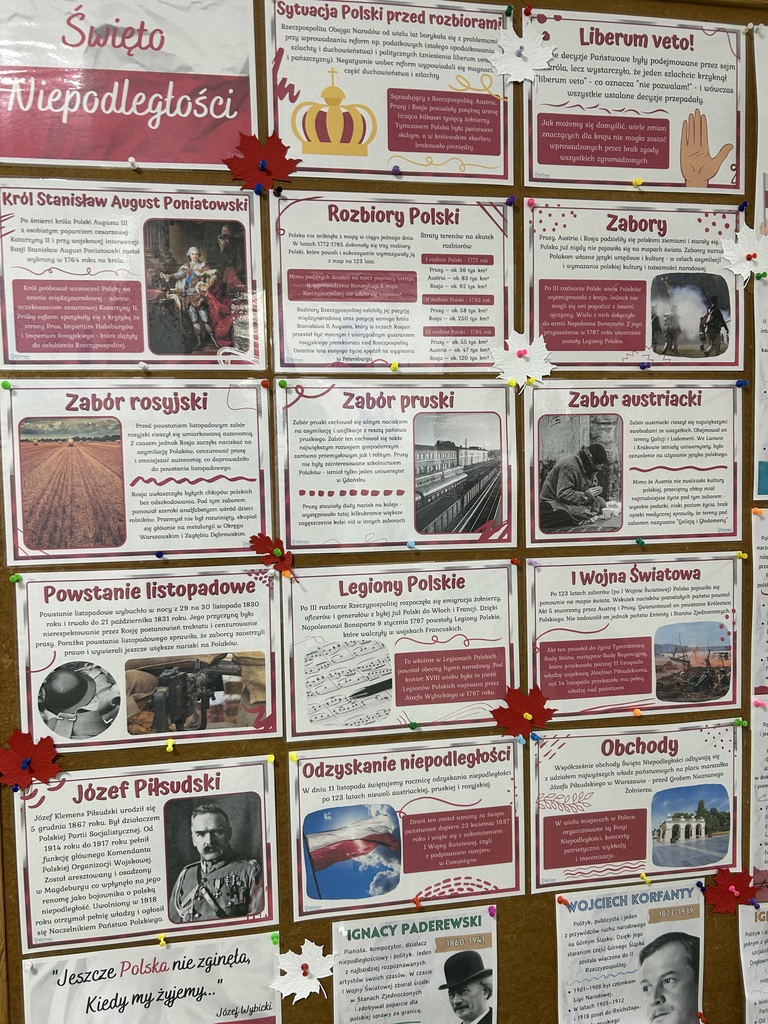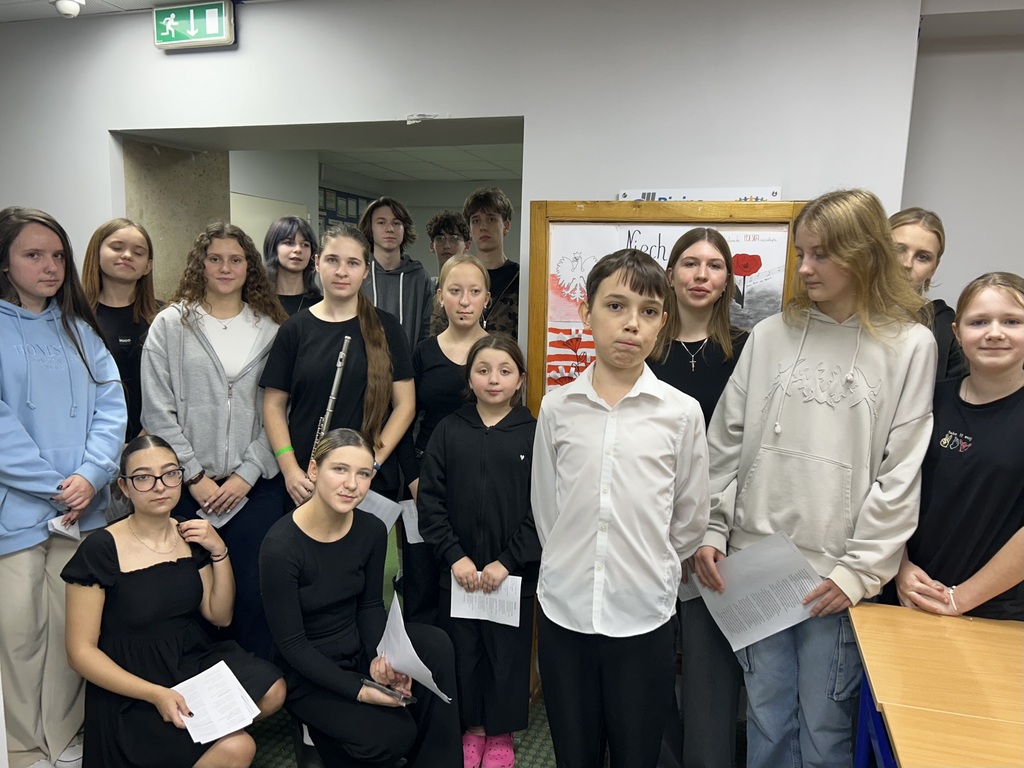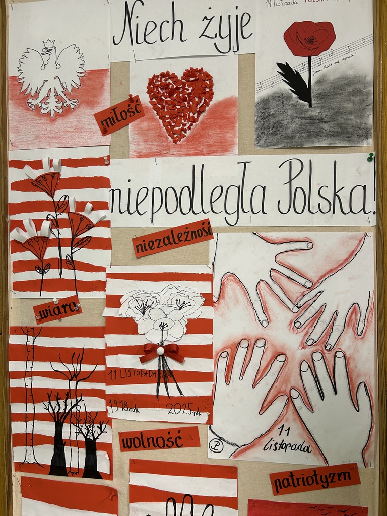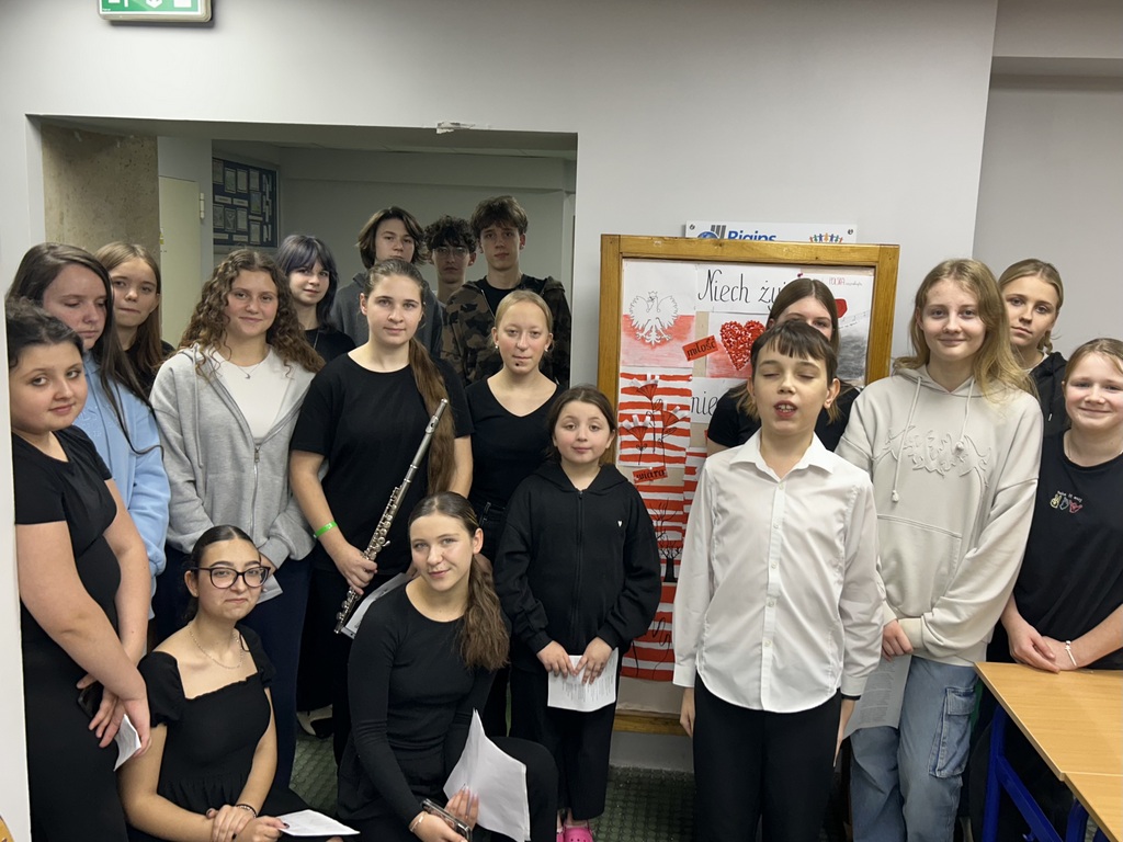 Był czas, kiedy Polski nie było… (…) Polska nie jest wytworem jakiejś dziejowej konieczności, lecz dziełem wolności. (…) Póki co jednak wciąż wybiera się polskość, wciąż się ją uznaje za swoją własność, wciąż znajdują się tacy, którzy się do niej przyznają. Dzięki takim wyborom Polska trwa. (Józef Tischner) 12 listopada 2025 roku w naszej szkole odbyła się uroczysta wieczornica poświęcona upamiętnieniu 107 rocznicy odzyskania przez Polskę niepodległości. W poezji i śpiewie pieśni patriotycznych uczniowie wyrazili swój podziw dla Ojczyzny. Wykazali się niezwykłą wrażliwością oraz potencjałem artystycznym, szczególnie w śpiewie i grze na instrumentach.