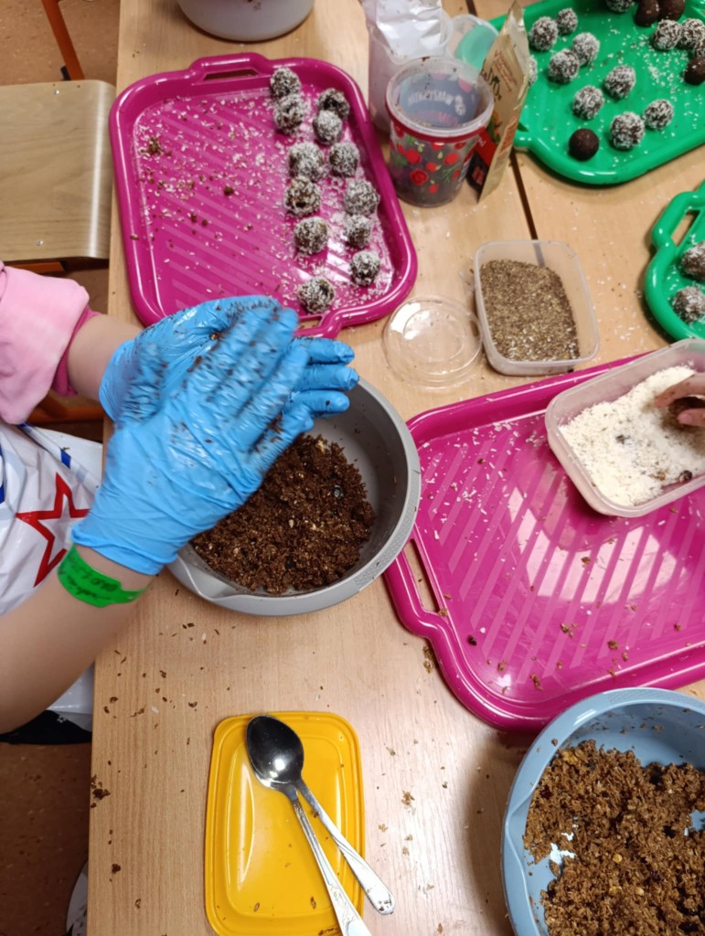 Podczas zajęć uczestnicy samodzielnie wykonywali ciasteczka z naturalnych składników, takich jak pasta daktylowa, płatki owsiane, czy suszone owoce. Warsztaty były nie tylko okazją do wspólnego pieczenia, ale także do rozmowy o zdrowym odżywianiu oraz nauki podstawowych zasad pracy w kuchni.