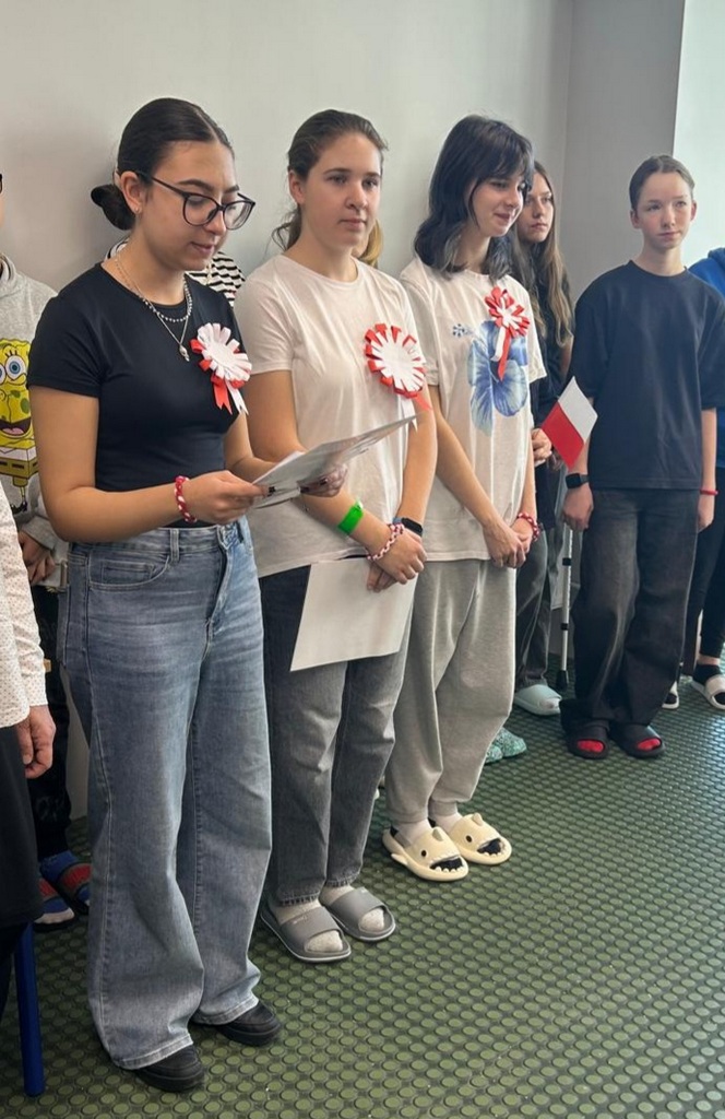 7 listopada na holu szkolnym zgromadzili się wszyscy uczniowie, nauczyciele, panie pielęgniarki oraz rodzice przebywający na hospitalizacji z dziećmi, aby odśpiewać „Mazurka Dąbrowskiego”. Zostali oni zaproszeni do tego wydarzenia poprzez wywieszone plakaty na oddziałach szpitalnych i na terenie szkoły oraz osobiste zaproszenie przez delegację uczniów. Byli także przygotowani przez nauczyciela muzyki, który utrwalił z nimi cztery zwrotki naszego hymnu narodowego w trakcie wcześniejszych lekcji.